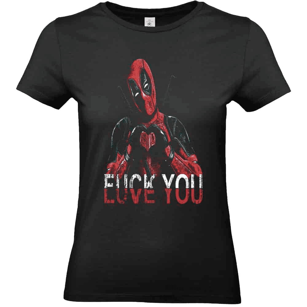 Ce T-shirt femme sur base B&C E190 affiche un motif provocateur « Love / F*** You » dans un style usé façon comics.