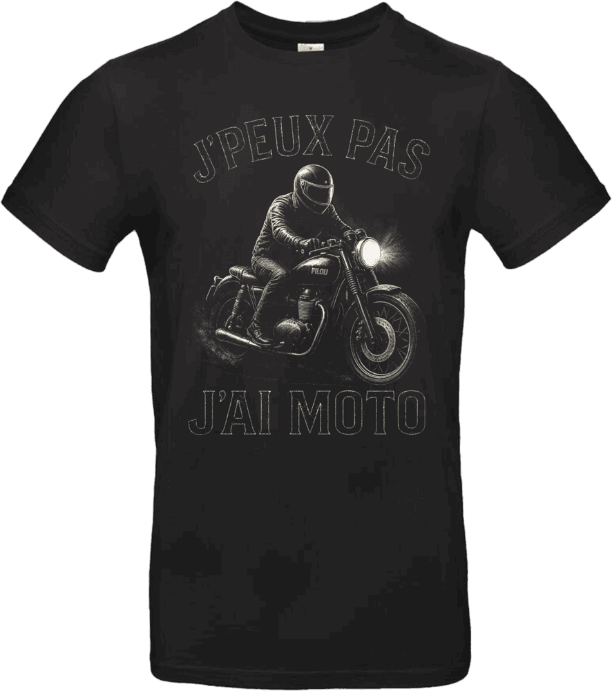 T’as le cuir, le casque, la passion et l’envie de prendre la route dès qu’un rayon de soleil pointe le bout de son nez ? Alors ce T-shirt “J’peux pas j’ai moto” est clairement fait pour toi.