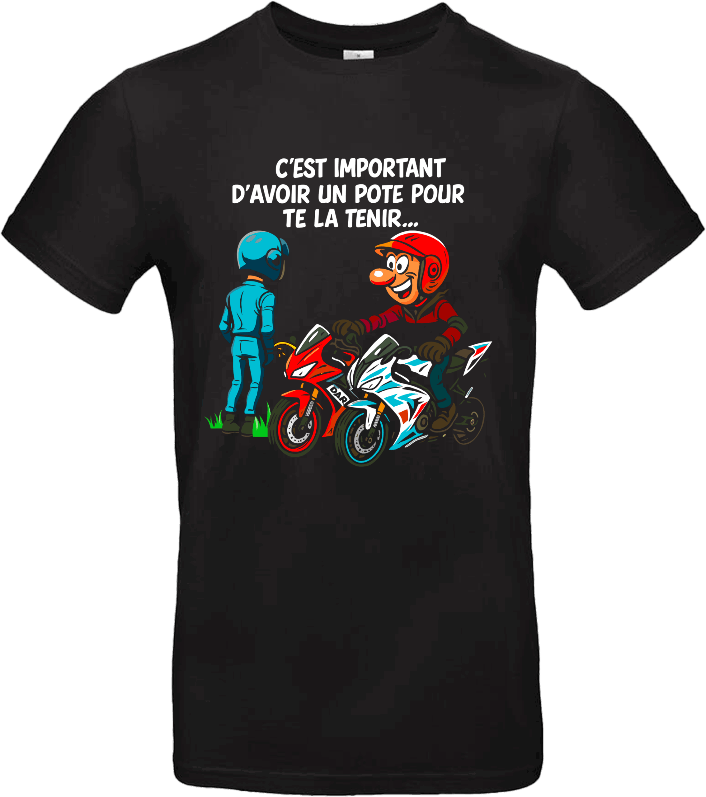 T-shirt Humour Moto – C’est important d’avoir un pote pour te la tenir