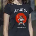 Le design Ju-Jitsu – Fight Like a Cat détourne les codes des arts martiaux avec intelligence et second degré. Le chat incarne l’agilité, la précision et l’instinct, valeurs chères aux pratiquants comme aux amateurs de sport de combat.